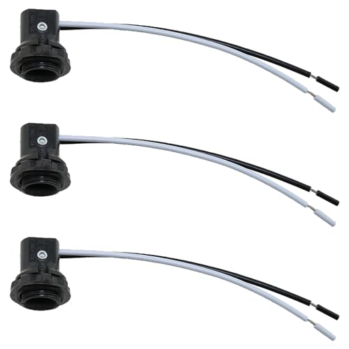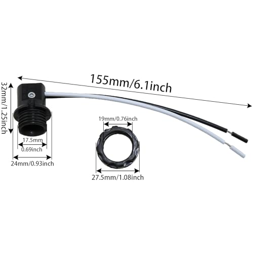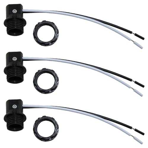 Heyous 3PCS Candelabra Base Socket E12 Lamp Base Bulb Socket with 6 Inch Wire and Threaded Outer Ring Suitable for Nightlight and Candelabra and Chandelier