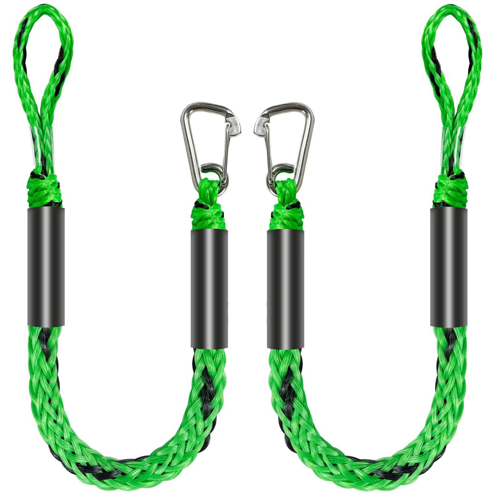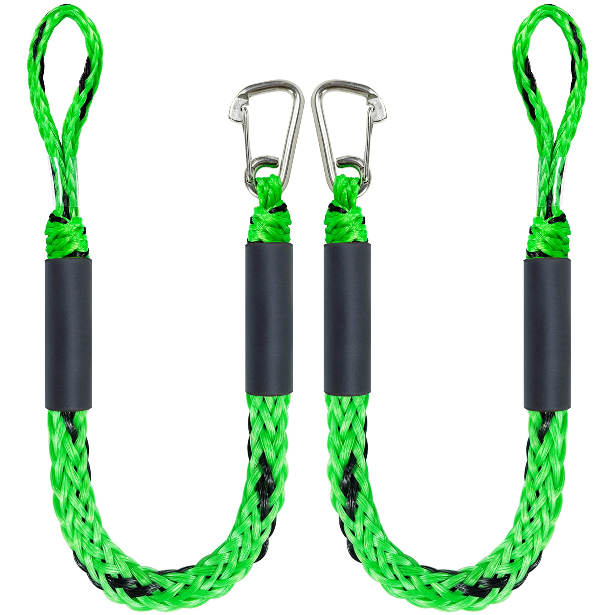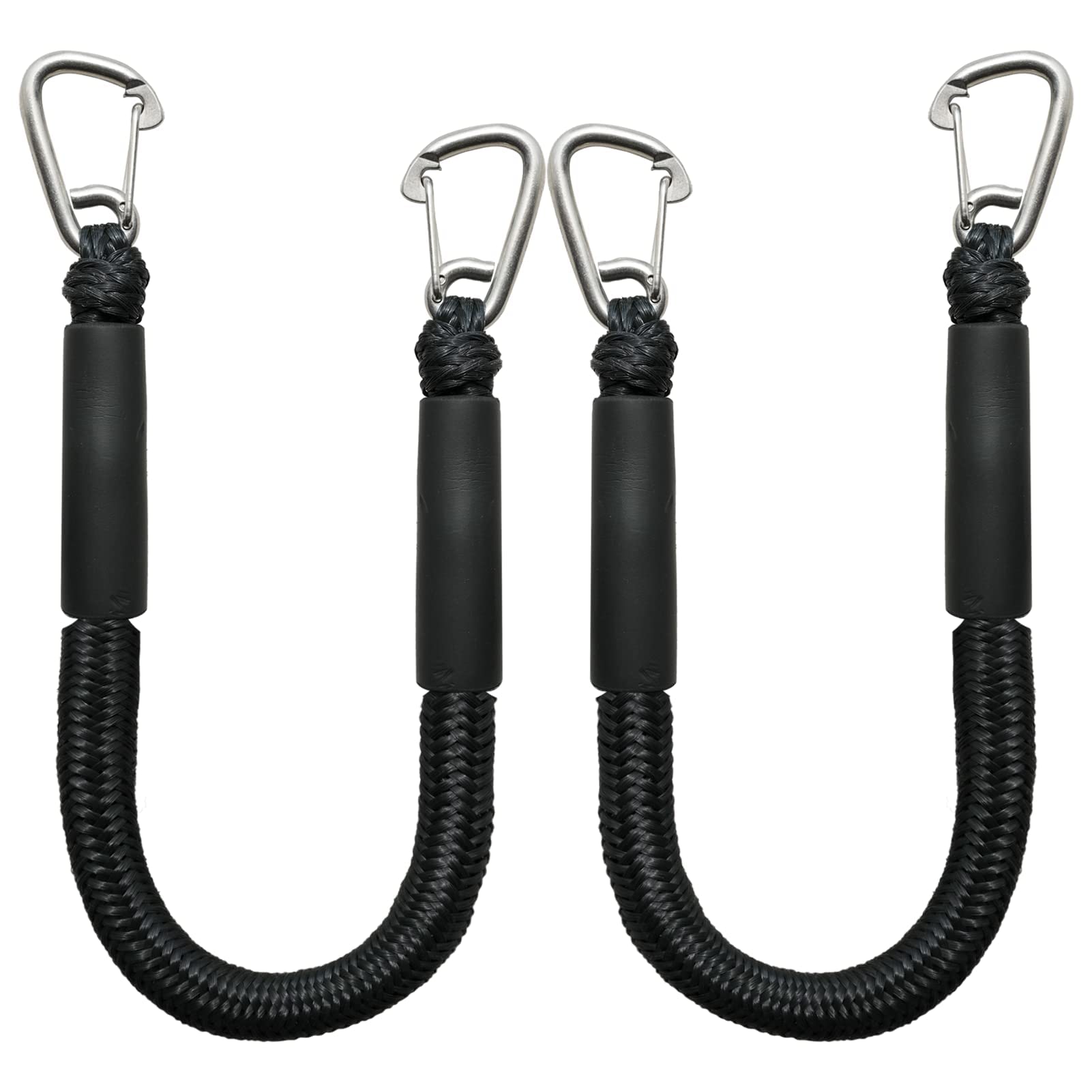 3 Feet Bungee Dock Line Boat Ropes for Docking Line Mooring Rope with Stainless Steel Clip Accessories for Boats 2pcs (Green&Black, 3 Feet)