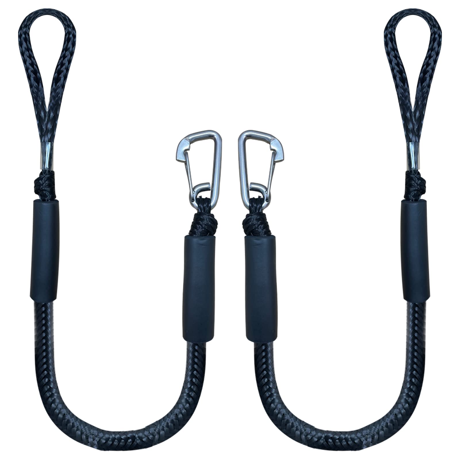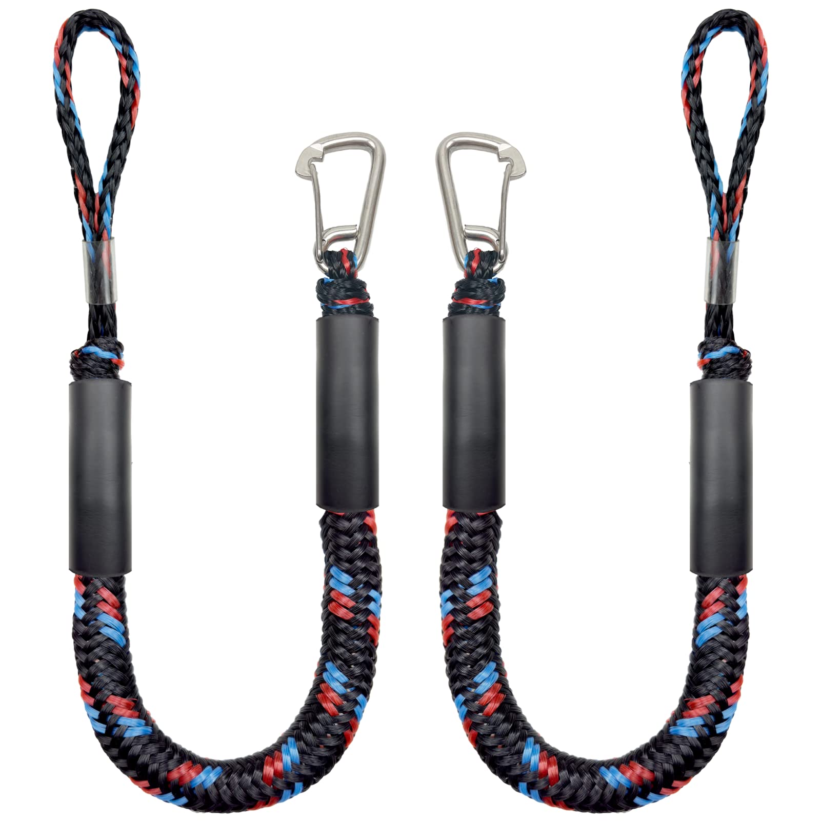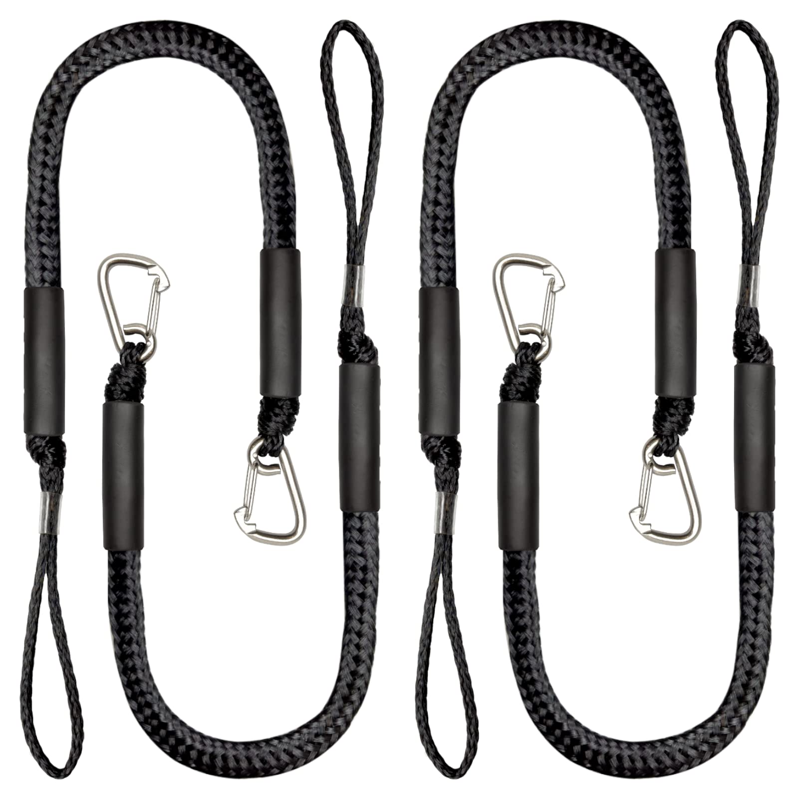 3 Feet Bungee Dock Line Boat Ropes for Docking Line Mooring Rope with Stainless Steel Clip Accessories for Boats 2pcs (Green&Black, 3 Feet)