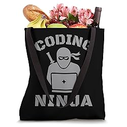 Coding Ninja' - a badge of honor for those who tackle coding challenges with stealth and skill, perfect for developers and programmers Ideal for software wizards, tech enthusiasts, and computer science students who excel in coding marathons, hackathons, and tech meetups 16” x 16” bag with two 14” long and 1” wide black cotton webbing strap handles. Made of a lightweight, spun polyester canvas-like fabric. All seams and stress points are double-stitched for durability, and the reinforced bottom flattens to fit more items and hold larger objects. Spot clean/dry clean only.