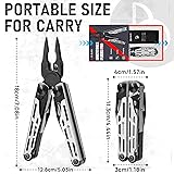 Heavy-duty Multi Tool Pro: BIBURY multipurpose tool is made of high hardness stainless steel (3Cr13), which is durable enough for harsh and heavy-duty environments. It is perfect for outdoor enthusiasts or professionals All-in-one Multitool Pliers: This multi-tool with 31 tools including pliers, replaceable wire cutters, wire strippers, large scissors, punch, replaceable saw, knifes, wood/metal file, awl, bottle&can openers, ruler, 8 sets of screwdriver bit (PH1+PH4, SP8+SP4, TT25+TT20, TT15+TT10, SL6+SL5, SL4+SL3, H5+H4, H3+H2.5), ideal for outdoor activities, home works, daily DIY and more Replaceable & Interchangeable Tools: An extra set of replaceable wire cutters are included in package, which are made of premium alloy with YG10 tungsten, it is durable and easier to cut mild steel hardware. The file and wood saw blade can be interchanged to achieve more functions while keeping the pliers compact Portable with Multitool Sheath: BIBURY multitool Pro comes with a durable nylon sheath for carrying, featuring a front pocket for screwdriver bits and side pockets for holding saw blades. With its lightweight, folded design, you can put this multifunctional tool in your car or bag for outdoor survival, camping, hunting Ideal Present for Men: BIBURY multi tool is ideal for both outdoor and indoor activities, such as survival, camping, hiking, fishing, home DIY work and so on. With the unique design and well packed box, it is perfect for gifting on Valentine’s Day, Father’s Day, Christmas, Birthday or Anniversaries Customer Service: BIBURY team provides customers with quality products and services. If you have any problems after the purchase, please let us know without any hesitation. We will do our best to solve problems and meet your requirements