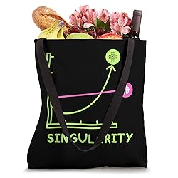 The ultimate gift on singularity, generative AI and super intelligence. Ideal for science fiction fans, data engineers, data scientists, data analysts and computer scientists. Show your passion for science fiction, deep learning, cyborgs, robots, exponential growth and black holes. 16” x 16” bag with two 14” long and 1” wide black cotton webbing strap handles. Made of a lightweight, spun polyester canvas-like fabric. All seams and stress points are double-stitched for durability, and the reinforced bottom flattens to fit more items and hold larger objects. Spot clean/dry clean only.