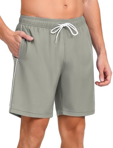 unitop Mens Swim Trunks with Compression Liner Quick Dry Beach Board Shorts with Pockets
