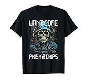 Phish & Chips Funny Hacker Programmer Cyber Security Coder T-Shirt