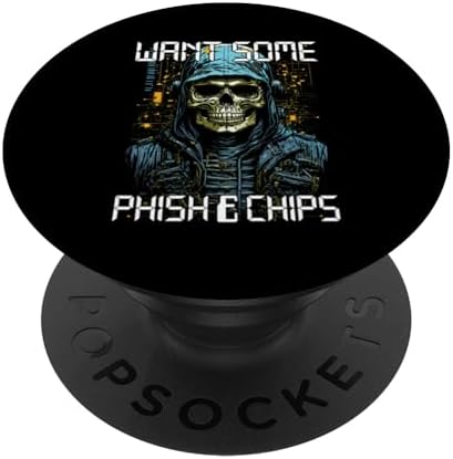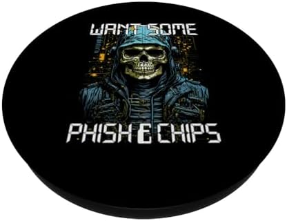 Phish & Chips Funny Hacker Programmer Cyber Security Coder PopSockets Standard PopGrip