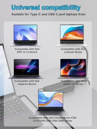 65W USB C Charger Compatible with Dell Xps 12 13 7390 9315 9310 9320 9305 9250 9305 9300 9340 9350 9360 9370 9380 9250 2-in-1 9310 2-in-1 9315 2in1 9365 2in1 7390 2-in-1 HA65NM170 Laptop