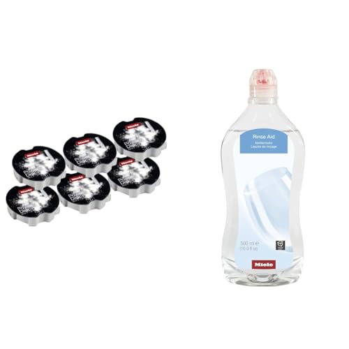 Miele PowerDisk All in 1 Dishwasher Detergent for Dishwashers with AutoDos, 6-Pack & Dishwasher Rinse Aid, for Optimal Drying and Sparkling Finish with Glass Protection Formula, 16.9 oz