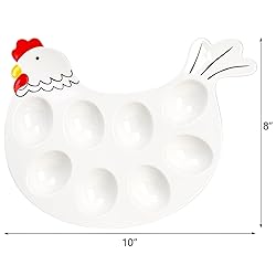 High Quality Materials - Made from porcelain, pretty hen modelling, its strength and durability, makes it the perfect collection for busy family homes. Deviled Egg Platter Tray - The perfect dish for serving munchies at barbeques, parties, tailgates and picnics. Fits up to 8 devilled eggs halves. Egg Tray is a Party Favorite - Great for Easter, BBQ, pool parties, summer time, camping; the cute hen look is so appetizing your guests won't stop talking about it. Easy to Clean - Smooth, impermeable material resists staining so can be easily cleaned with scouring pad and soapy water. Perfect for Gifting & Entertaining - This great egg tray can be your perfect choice for a sweet gift for Ester or wedding. Also classic and convenient for the entertaining. You can use to serve the deviled eggs on the Easter table.