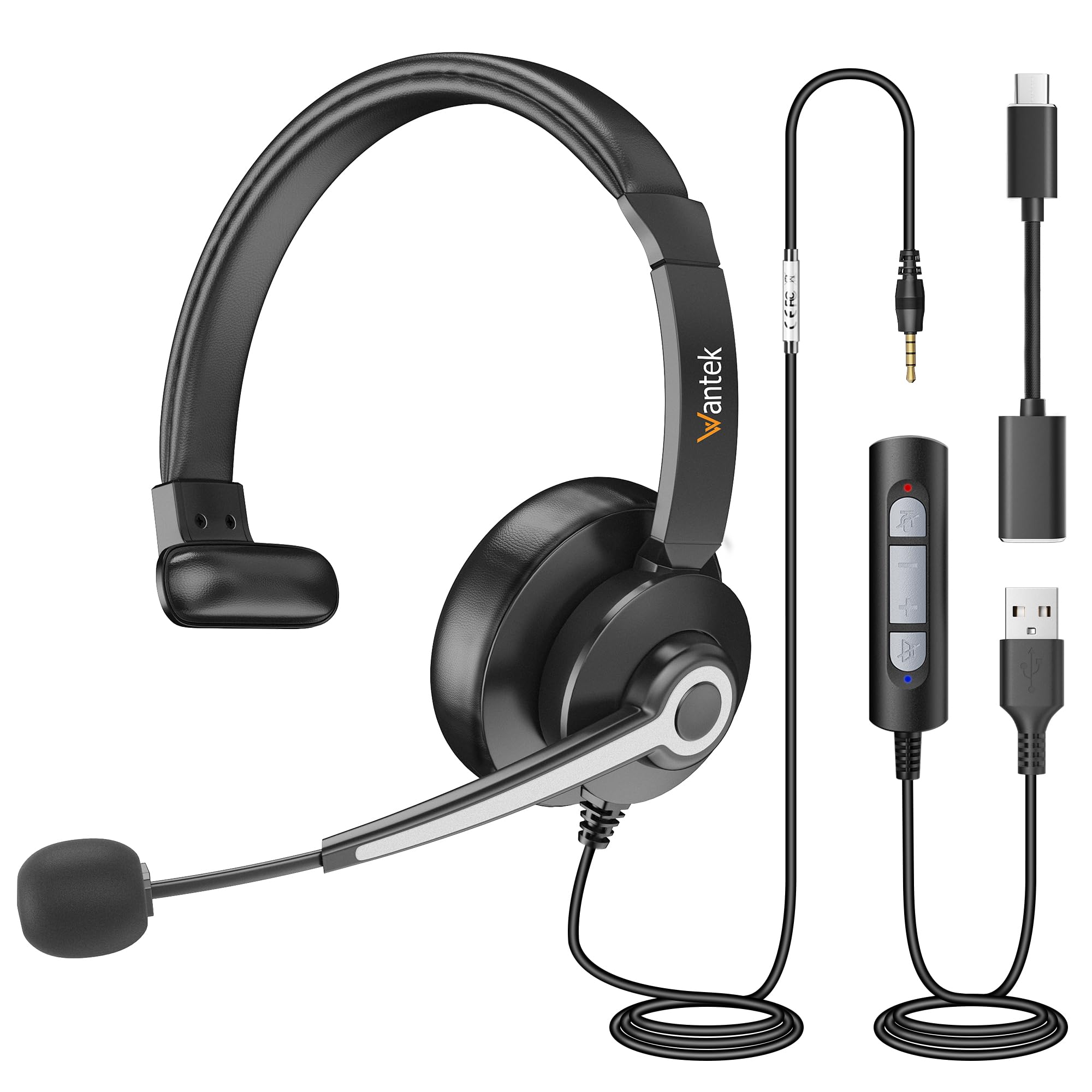 - ✅[3-in-1 Universal Compatibility – Single-Ear Design for All Devices] Wantek single-ear headset features 3 flexible connection options (USB, 3.5mm jack, Type-C) to seamlessly pair with your PC, laptop, Android phone, tablet, and more. Whether you’re working indoors, taking calls on the go, or enjoying music outdoors, this wired mono headset meets all your daily needs without compatibility hassle.