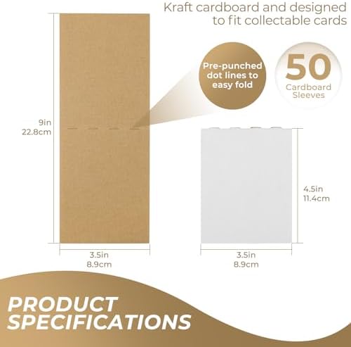 Golden State Art, 50 Pack 3.5X4.5 Inch Trading Card Protector, Shipping Corrugated Sheet, Cardboard Inserts, Sport Baseball Football Card Folders, White