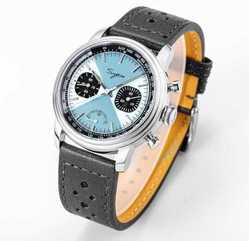 Brand: Sugess Condition: New with tags Series: Chrono Heritage Reference: S438.03.Y Function: 12 Hours and seconds Indicator, 30 Minutes Chronograph Features: Column Wheel Chronograph, Blue steel screws and Exhibition Case Back Cover Diameter: 41mm Thickness: 13mm Glass Material: Sapphire Crystal Case Material: 316L Stainless Steel Band: Leather Movement: Manual winding Caliber: Genuine Seagull ST1906 Jewels: 21 Vibration: 3 Hz (21,600 BPH) Power Reserve: 45 Hours Water Resistant: 5ATM (50 Meters) English Instruction Manual: Yes