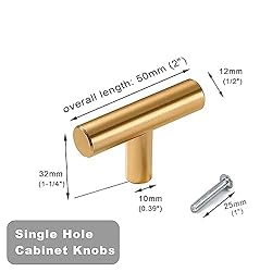 - THSIREE 30 Pieces Cabinet Hardware: A Personal Touch for Your Home THSIREE Door Drawer Knobs are ideal for residential or commercial applications, marries beauty and function. It’s the best combination of approachable artistry and lasting quality. Easy Installation and Perfect Size Color: Gold Material: Durable Stainless Steel Knobs size: Overall length:2 inch(50mm), Diameter:1/2 inch(12mm) Screw size: Length:1 inch(25mm), screw diameter:0.15 inch(4mm) Quantity: 30 pcs cabinet knobs + 30 pcs screws Suitable for most Styles Fully compatible with any cabinet styles, from modern to rustic, from Asian-style to European style. You can use it in any space, from living room to bedroom or kitchen. Such as kitchen cabinet, furniture door, cupboard, desk drawer, wardrobe drawers, shoe cabinet, chest, bookcase and much more! Package Includes 30 * Gold cabinet knobs 30 * Screws