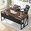 • 【Sturdy & Beautiful finish】:The office desk constructed of heavy-duty metal frame and thickened compressed board (1.2 inch) ensure durability and stability. The furniture set is a combination of vintage colors and black match any decor style.