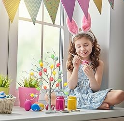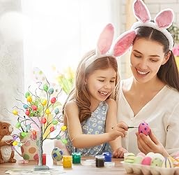 [Easter Tree Decoration]light up tree has 24 LED lights, 24eggs creative, warm white flashing lights for your room to add highlights, add Easter atmosphere [2 Power Supply Options]:Easter egg tree Lights are powered by USB/3 AA batteries, you can connect the USB cable (included) to a power source, laptop, USB outlet or adapter and you will be able to see a beautiful glowing tree. You can also use 3 AA batteries(not included) to feel the beauty of light. Note:You only need to choose one mode when using it. [Adjustable Design]Easter egg tree light branches are flexible and adjustable, you can unfold and straighten the tree at will, you can get a creative glowing egg tree [Applicable Occasions] Tabletop Tree Lights are suitable for desktop, home, bedroom, office, Christmas, party, for decorating, gift giving, make your mood happy