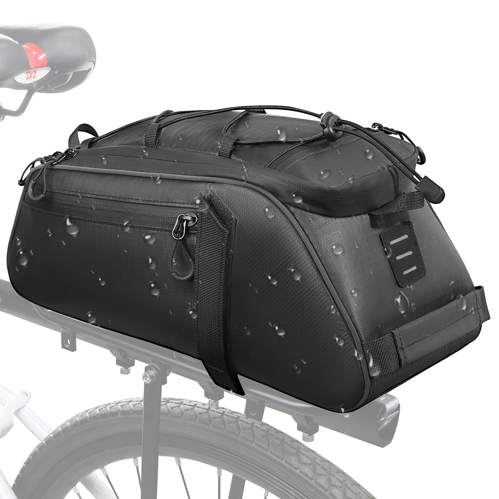 WOTOW Bike Rack Bag Waterproof - 10L Large Capacity Bike Trunk Bag, Reflective Bicycle Saddle Panniers, Cycling Bag Back Seat Storage Cargo Carrier Pouch with Shoulder Strap & Hook (10L)