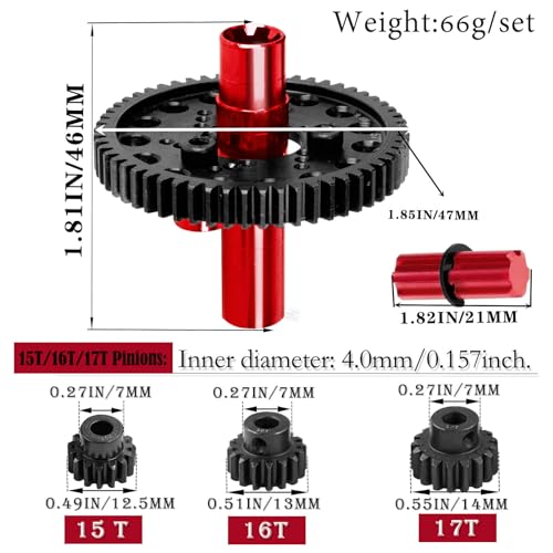Center Drive Shaft CVD&Metal Spur Gear Slipper Clutch 57T(32dp) with 15T/16T/17T Pinions Gear Upgrades for 1/10 4x4 Granite/Senton/Big Rock/Vorteks 3s BLX & mega550,Red
