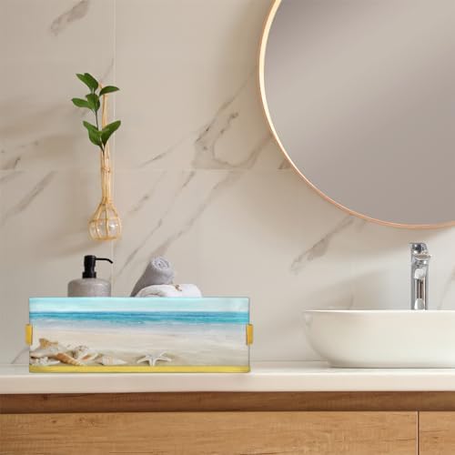 Sea Beach Starfish Bathroom Baskets for Organizing, Summer Seashell Foldable Storage Bins Toilet Paper Basket for Toilet Tank Top Fabric Storage Organizer for Shelves Closet Countertop