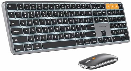 - Rechargeable and Power Saving: The keyboard and mouse for mac feature built-in rechargeable batteries, 1200mAh for keyboard, 300mAh for mouse. Additionally, if the keyboard is not used for 60min, it will enter sleep mode and can be awakened by pressing any key. Backlighting needs to be turned on again