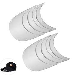 Package Include:10 pcs insert hat brim(white) The tongue of the cap is made of high quality plastic, toughness, not easy to break, can play a good support role, this brim accessory has a curvature, can be better to play the role of shading. The baseball cap insert brim can be used to fix the shape of the hat for easy use. This is a very good accessory, can replace or replace the insert visor of the hat, but also can be handmade DIY production, free creation. Suitable for: knit caps, baseball caps, leather caps, visors, hollow top hats, etc.