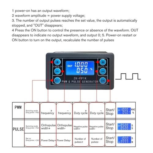 ZK-PP1K Signal Generator Dual Mode LCD PWM 1-Channel 1Hz-150KHz PWM Pulse Frequency Duty Cycle Adjustable Square Wave Generator (Color : ZK-PP1K)