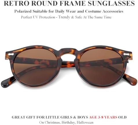 Gleyemor Kids Polarized Cute Round Sunglasses for Kids Girls Boys Age 3-8