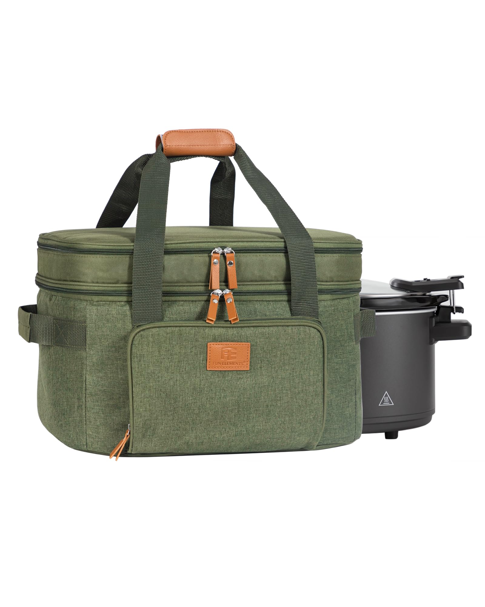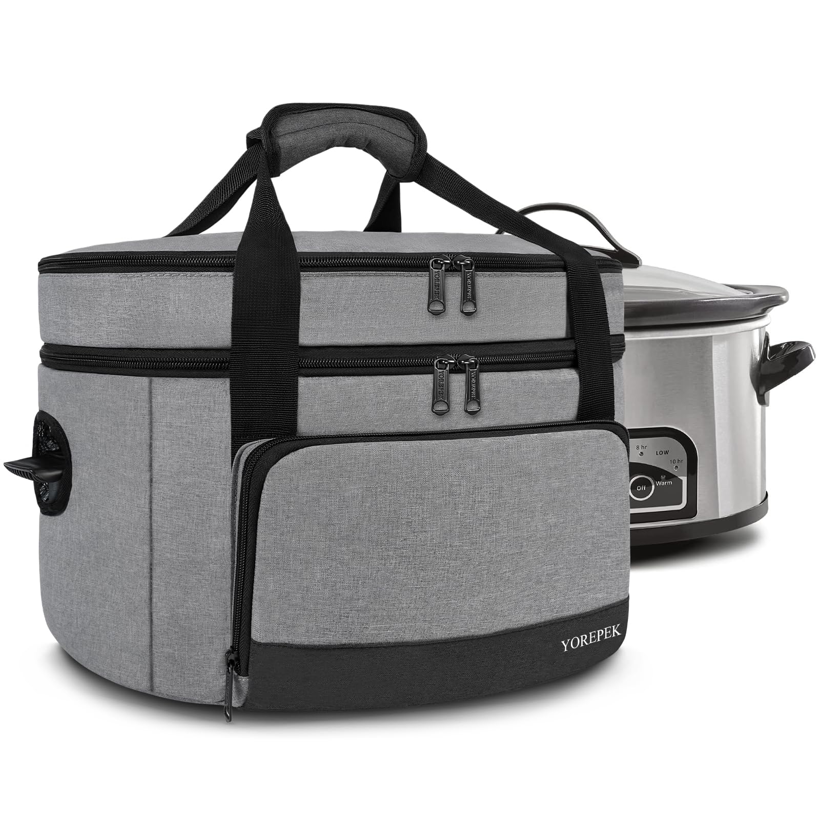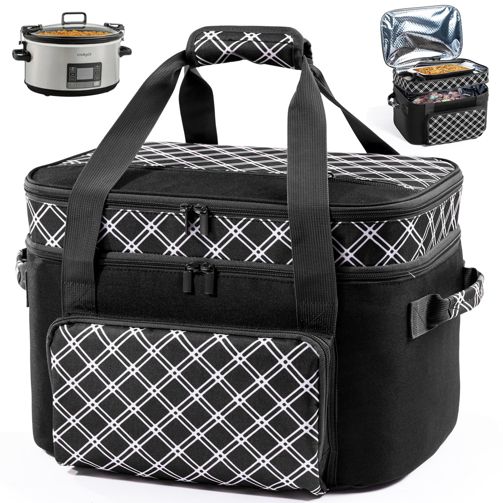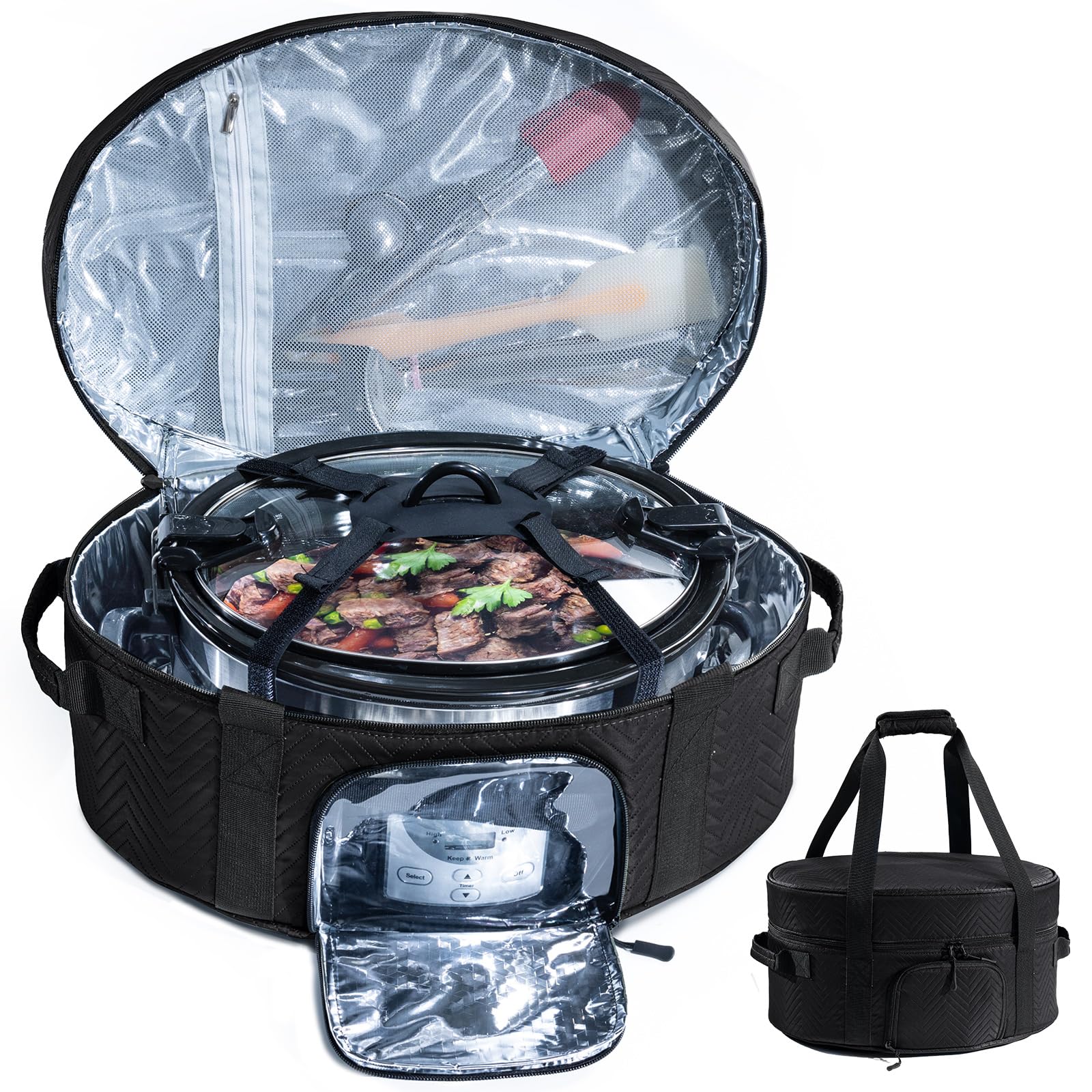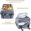 - DOUBLE LAYERS Design & Spacious- The main compartment fits the slow cooker well and comes with adjustable bands to keep the crok pot in place to avoid any drips/spills during transportation. The top layer is great for you to store your supplier utensils. Easy to load up a hot crok-pot for a potluck, church, parties, etc.
