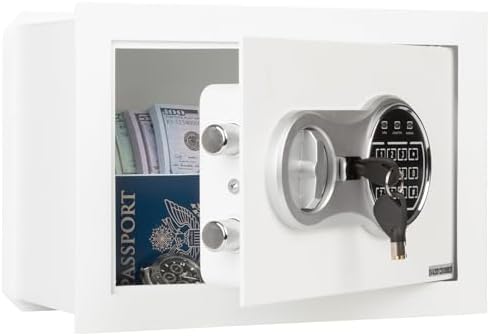 Wall Safe - Digital Safety Box with Passcode for Quick Access and Backup Key - Personal Safe for Cash or Jewelry - Wall Safes by Paragon (White)