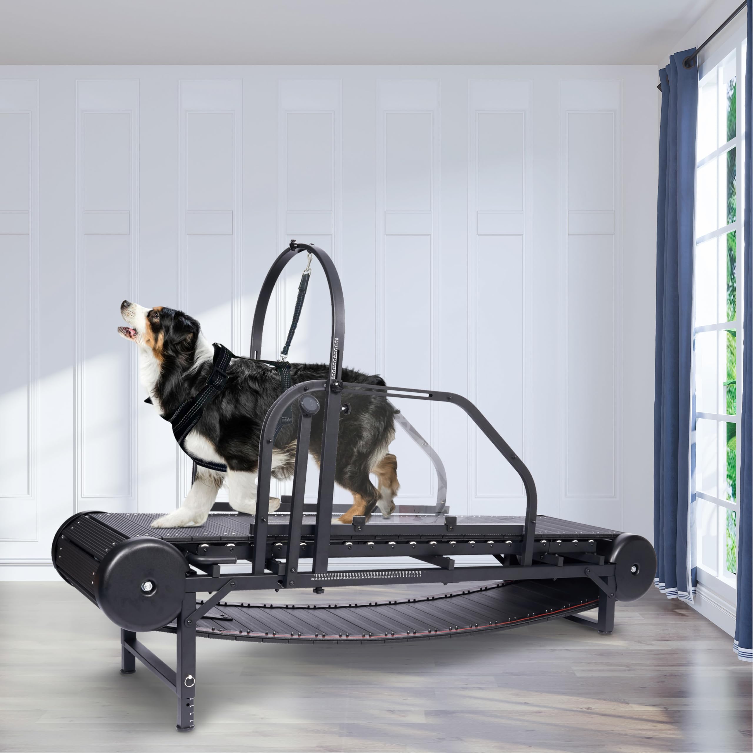 - 【HIGH QUALITY NON-ELECTRIC SELF-DRIVING DESIGN】 There is no need to worry that the dog cannot adapt to the treadmill speed. The non-electric design allows the dog to freely drive the track and the track speed is determined by the dog. The noise-reducing, high-quality and smooth rollers make the track run easier and provide a safe and comfortable exercise environment for the dog.