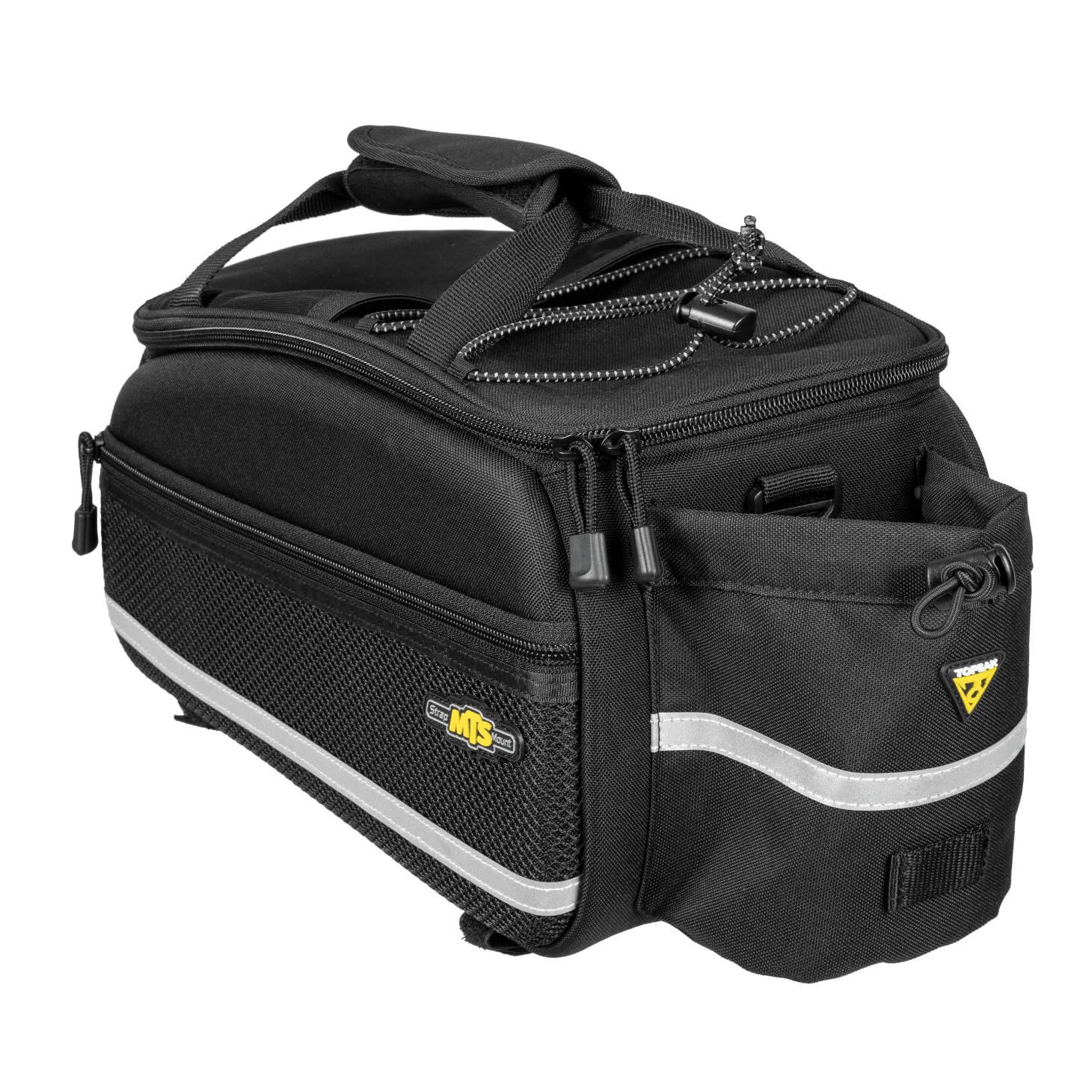 - Designed with two metal hooks on the back and a quick-release buckle to help you secure the bag to your bike's rear rack for easy installation and removal.