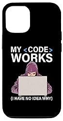 My Code Works (I Have No Idea Why). Programmer working on his computer. Computer Programming Design perfect for software developers computer engineers, web designers. If your work is in debugging, coding, developing apps, this design is rightly for you, just beware of the fixing bugs and hacker. Two-part protective case made from a premium scratch-resistant polycarbonate shell and shock absorbent TPU liner protects against drops Printed in the USA Easy installation