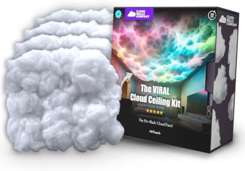 The viral Cloud Ceiling—Made Easy! Pre-Made Cloud Ceiling Panels are the perfect, hassle-free way to add a dreamy touch to any room. With simple peel-and-stick installation, you’ll be done in no time—no glue, no mess! Just apply LED strips, arrange the Cloud Panels over the strips in any design you like, and enjoy your new cloud wall. Designed specifically for excellent light transmission, these panels diffuse LED light beautifully for a soft, glowing effect. Key features include self-adhesive panels for easy installation, soundproofing to improve acoustics, organic cloud texture for a magical look, and fire-retardant materials for added safety. These panels are reusable, safe on walls and paint, and renter-friendly. Great for teens, dorms, bedrooms, game rooms, and more! Each set of 10 panels covers 15.6 square feet, making them perfect for gaming setups, kids' rooms, or any space that needs a unique touch. LEDS INLCUDED. Packaging may vary.