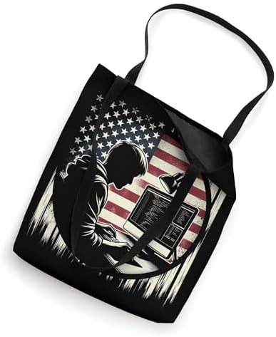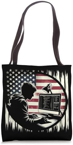 Software Developer Vector. A striking vector design showcasing a software developer deeply focused on coding at a computer, with an artistic backdrop of a subtle American flag.