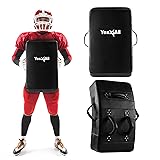 - Yes4All Leather Blocking Pad- Consist of 1 Blocking Pad- Durable training tool for football, basketball, and mixed martial arts enthusiasts. This blocking pad is a versatile addition to any training regimen, whether it's used for football practice, as a kick pad for martial arts, or even as basketball training equipment. It's not just a football dummy or tackle dummy, but a comprehensive training tool suitable for athletes from youth to high school and college.Why should choose us? - The Leather Blocking Pad boasts a curved design that is both functional and beneficial during training sessions. - Bottom bottom-laced fastening system, which provides superior endurance compared to zippers, combined with solid rivets, contributes to this blocking shield pad impressive 450lbs capacity. - The pad features 2 webbing side handles and 3 padded PU leather handles, allowing for multiple positioning options during training. This unique design makes it an effective tool for football blocking pads, muay thai pads, punching pad or even volleyball blocking.This blocking pad for football training is more than a football tackling bag or a basketball training dummy. It's a comprehensive training tool designed to enhance your skills in multiple sports disciplines. Get the most out of your workouts with Yes4All's Leather Blocking Pad