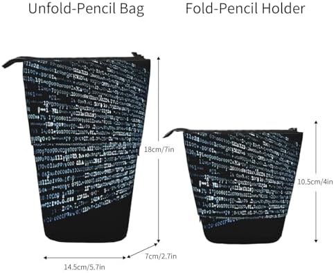 size:Programmer Programming Code office use bag measures 7" x 5.7". All kinds of pens, erasers, small scissors, tape, etc, pop up pencil holder for office can be easily accommodated.material:office pencil bag unique pop up design with high quality polyester, telescopic stationery case for office more comfortable and soft, durable and superior.cute design:the unique pop up pencil case design, so funny and lovely. Stand-up organizer offer high quality materials, easy to storage and clean,durable.adjustable:telescopic holder bag top can be pull up or slid down to adjust the height of the bag, pull the pouch up and down to transfer it. Stationery pencil case also has small pockets in it, and can used as a purse, stand-up portable telescopic bag.enough capacity:the special retractable pencil bag pen holder can put in your daily bag and also has enough capacity to storage. Pencil pouch for men women perfect gift to your friends on birthday, any important events.