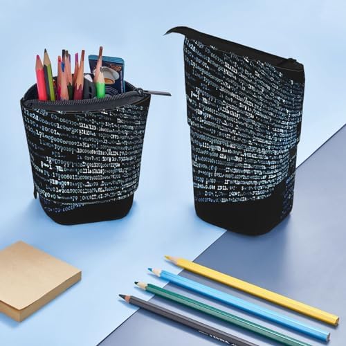 Telescopic Pencil Case Programmer Programming Code Print Pencil Case Standing Pencil Case for Office Stationery Case Pop up Pencil Holder Retractable Pencil Pouch Pencil Bag for Work