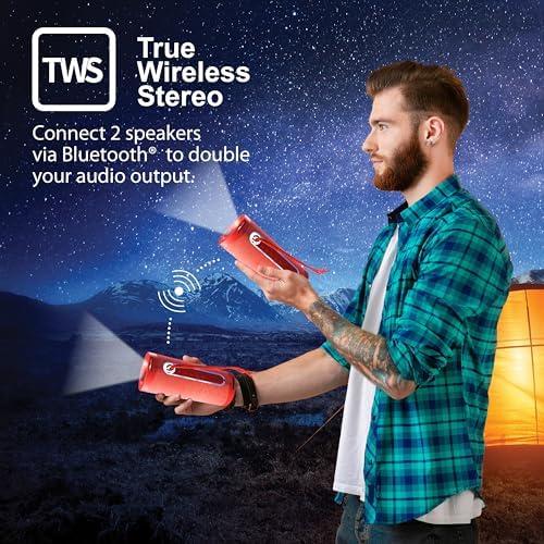 - 🎶𝐌ulti-𝐅unctionality: Not just a speaker, it offers a plethora of features, including TWS (True Wireless Stereo) support, FM radio capabilities, USB/Micro SD Card inputs for easy file playback, a hands-free microphone for calls, and even an LED flashlight for added convenience.