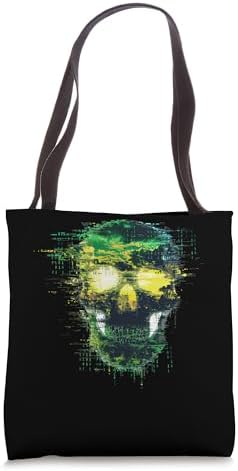 Creepy Skull Binary Code Glitch Computer Science Coding Tote Bag