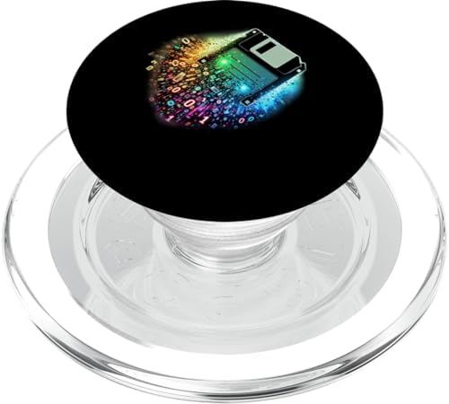 Colorful Floppy Disk Binary Code Programming Vaporwave PopSockets MagSafe PopGrip for iPhone