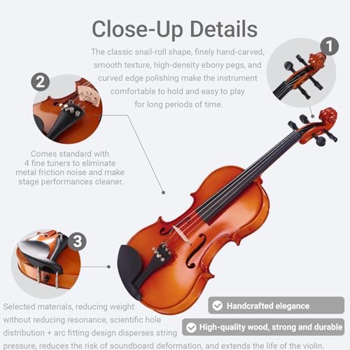 - 【Comfortable& Durable】The violin for beginners is designed with comfort in mind, ensuring hours of enjoyable playability. Its ergonomic shape and lightweight design make it easy to hold and maneuver, minimizing strain and fatigue during extended practice or performances. Its sturdy construction and reliable components ensure that it will withstand the test of time, allowing you to enjoy playing it for years to come