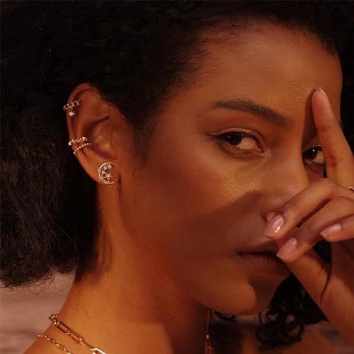 FETTERO Tiny Stud Earrings for Women 14K Gold Plated Earrings Delicate Trendy Earrings Cute CZ Star Studs Earring for Everyday Wear Hypoallergenic Earrings for Women Gold Jewelry Gifts