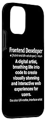 Funny Frontend Developer design to add a dose of humour to your coworker's day with our funny gag gift for accountants Looking for a unique gift for your favorite Frontend Developer? Our hilarious design is a perfect choice. It's a funny gag gift that will surely be a conversation starter at wok Two-part protective case made from a premium scratch-resistant polycarbonate shell and shock absorbent TPU liner protects against drops Printed in the USA Easy installation