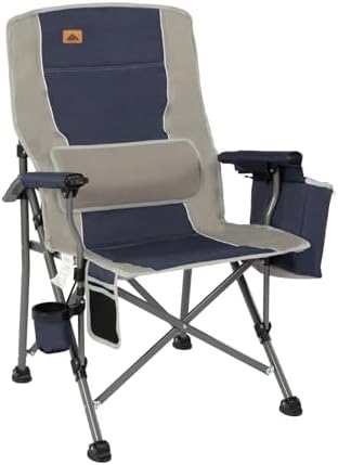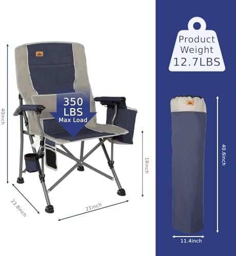 Ablazer Camping Chairs for Adults, Support 350 LBS Folding Chairs for Outside, Lawn Chairs Heavy Duty with Cooler Bag & Cup Holder (Blue & Grey)