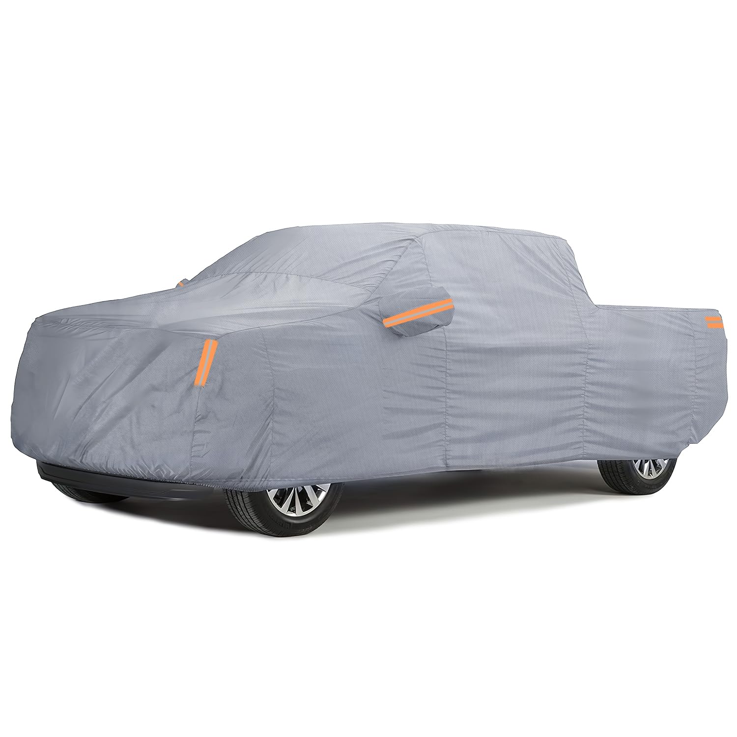 - 【Professional Design】1. unique door zipper on the driver's side for quick and convenient access. 2. windproof straps & elastic hem at front and rear to protect your car cover from blown away by heavy wind. 3. full-range reflective stripes remind others at night. 4. Large-capacity storage bag helps you easily store your car cover.5.The car cover is stitched with double needle and double thread, which is more sturdy.