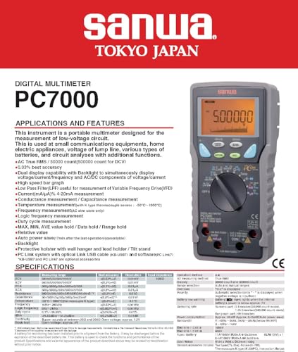 Japan Sanwa PC7000 Digital Multimeters (PC Link) 500000 Count for DCV, Dual Display(PC7000)