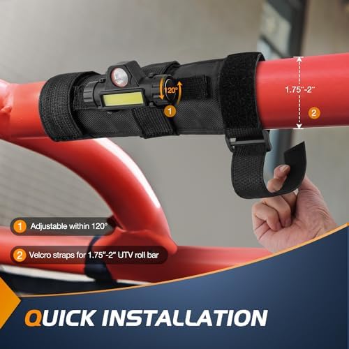 - Two Installation Methods: Easily and firmly mounted on 1.75-2.0inch roll bar by Velcro tape, adjustable within 90°. The direction of the grab handles can also be adjusted freely. Or the light can be adsorbed on ironwork surface with strong magnetic base, light up anywhere you want. UTV dome light has IP65 waterproof rate, can resist rain and dust, durable in any weather
