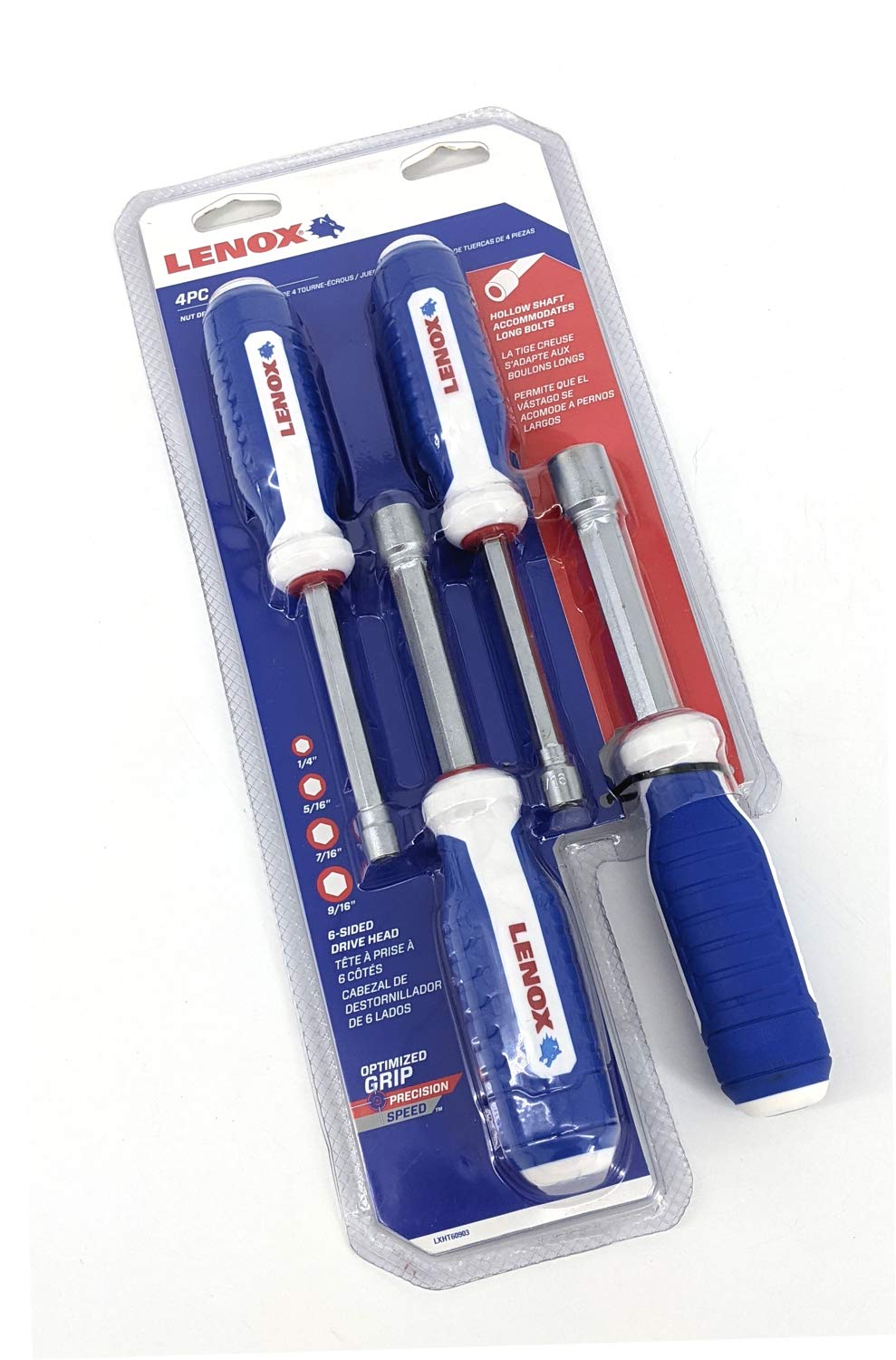 The LENOX 9-IN-1 Multi-Bit Screwdriver has a dual-sided removable shaft offering 1/4", 5/16", and 3/8" nut driving capability.