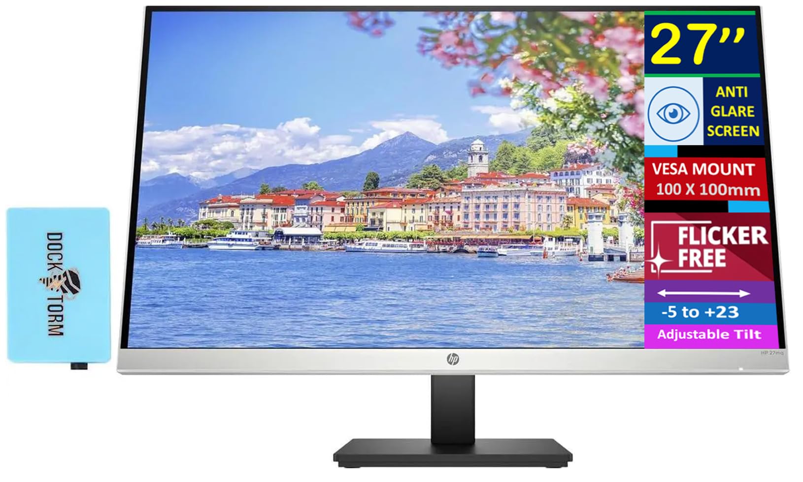 Sit back and soak in all the content you love with this exceptional 27"" FHD monitor with speakers. Experience colorful imagery and vibrant detail like they were intended with 99% sRGB color, deep 1500:1 contrast ratio, and 300 nits brightness. Its 100 Hz refresh rate delivers seamless scrolling and smooth, stutter-free viewing. With a tilt adjust stand and the Ergonomic Setup Guide in HP Display Center you can customize your comfort. Plus, HP Eye Ease with Eyesafe certification limits blue light to keep your eyes comfortable without impacting color accuracy, so you can do more, longer. These HP Series 5 monitors are designed using 85% recycled materials and 5% ocean-bound plastics to help reduce the raw materials we use. With 100% sustainably sourced packaging and an EPEAT Silver Registered and ENERGY STAR Certified design, you can be confident knowing you have a monitor that does good things for the planet while doing amazing things for you. This monitor is protected by a 1-year HP limited warranty. Certain restrictions and exclusions apply. ENERGY STAR and the ENERGY STAR mark are registered trademarks owned by the U.S. Environmental Protection Agency. Based on U.S. EPEAT registration according to IEEE 1680.1-2018 EPEAT. EPEAT status varies by country. Visit www.epeat.net for more information.