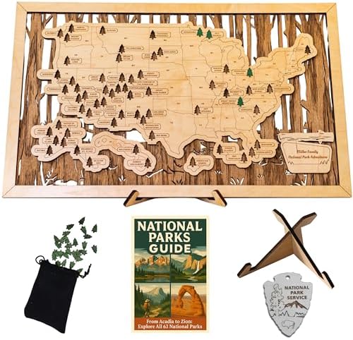 Personalized Wooden National Parks Map Push Pins Travel Tracker - USA Made National Park Map Gifts for Nature Lovers - Upgraded Scratch Off Checklist Wood Poster Bucket List - Ready to Hang