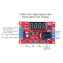 - 1. Multifunctional Relay: The function of the module has been increased to 32, and users can use corresponding specific functions according to actual needs.2. Anti Reverse Function: With power supply anti reverse connection function, the module will not be damaged due to wrong power connection.3. : The timing range is 0.1s‑999min, the accuracy is 0.01s, the operation will be more precise and reliable.4. Power Saving Setting: With low power consumption and power saving settings, the display area can be turned off to extend the service life of the relay.5. Multiple Usages: Can be applied to control, motor control, light strip control, solenoid valve control, etc.Spec:Item Type: Relay ModuleRelay Voltage: 12VInput Voltage: DC12V power supplyOutput Load: Within DC 30V, maximum 10A; within AC 250V, maximum 5A.Trigger : High Level: 12V, Low Level: 0VQuiescent Current: 20mAWorking Current: 60mAWorking Temperature: -25℃-85℃Power off Memory: YesWorking Parameter Setting Description: Press and hold the K1 button without letting go, the display will show P-xx after 2 seconds, press K2 and K3 to change the working mode. After selecting the working mode, short press the K1 key to enter the A time setting, and the screen displays Axxx. At this time, press the K2 and K3 keys to modify the A time parameter. Press the K4 key to set the position of the decimal point. After setting the A time, press the K1 key to set the B time, and the screen displays bxxx. At this time, press the K2 and K3 keys to modify the B time parameter. Press the K4 key to set the position of the decimal point. After setting the B time (when the mode has the C cycle number parameter), press the K1 key again to set the c cycle number, the screen displays Cxxx, at this time press the K2 and K3 keys to modify the c cycle number parameter, K2 and K3 keys Short press plus and minus 1, long press to