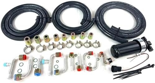 - - Fitting Set Model: FTSET404 1-N° 10 90° O-ring Fitting w/R134a Serv Port 1- N° 8 90° O-ring Fitting w/R134a Serv Port 1- N° 10 Straight O-ring Fitting 1- N° 10 90° O-ring Fitting 2- N° 6 90° O-ring Fitting 1- N° 8 90° O-ring Fitting 2- N° 6 Straight O-ring Fitting Set include metal FERRULES and CLAMPS If you decided use a/c clamps you don't need special crimper tool (YES... We include both systems) O-ring set is included